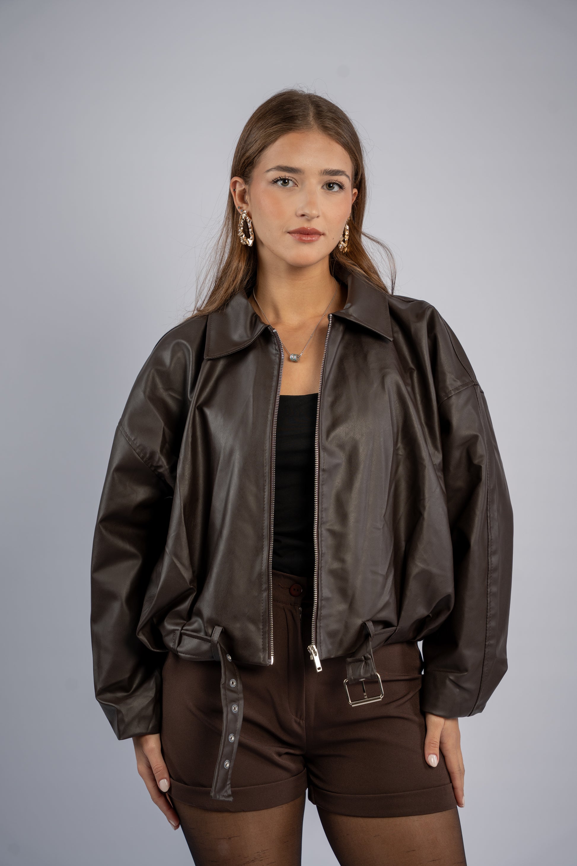 Leather jacket with belt