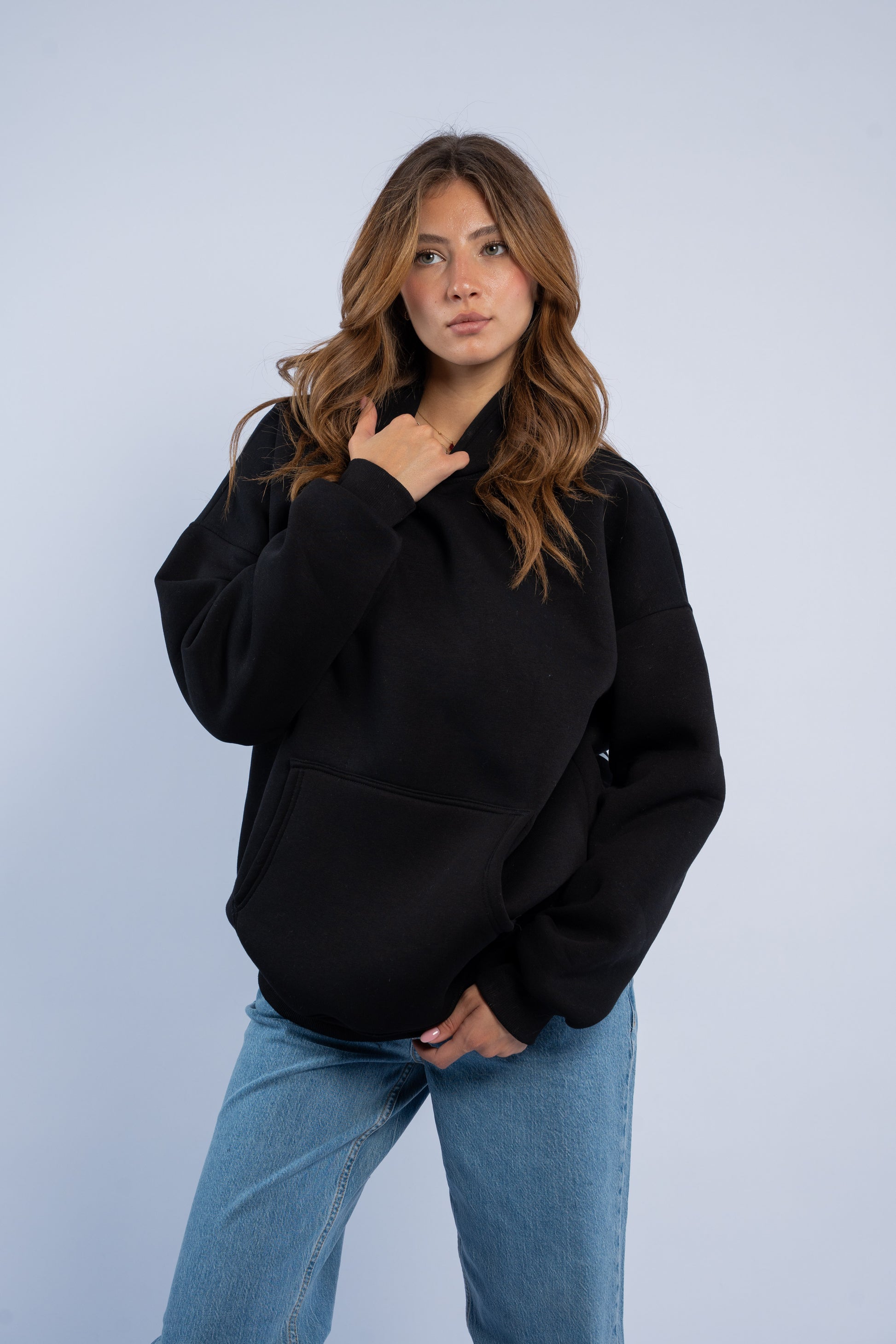 An oversized fleeced hoodie offering warmth and comfort with a playful twist. Features a relaxed fit and a bold quote graphic for a standout casual look.