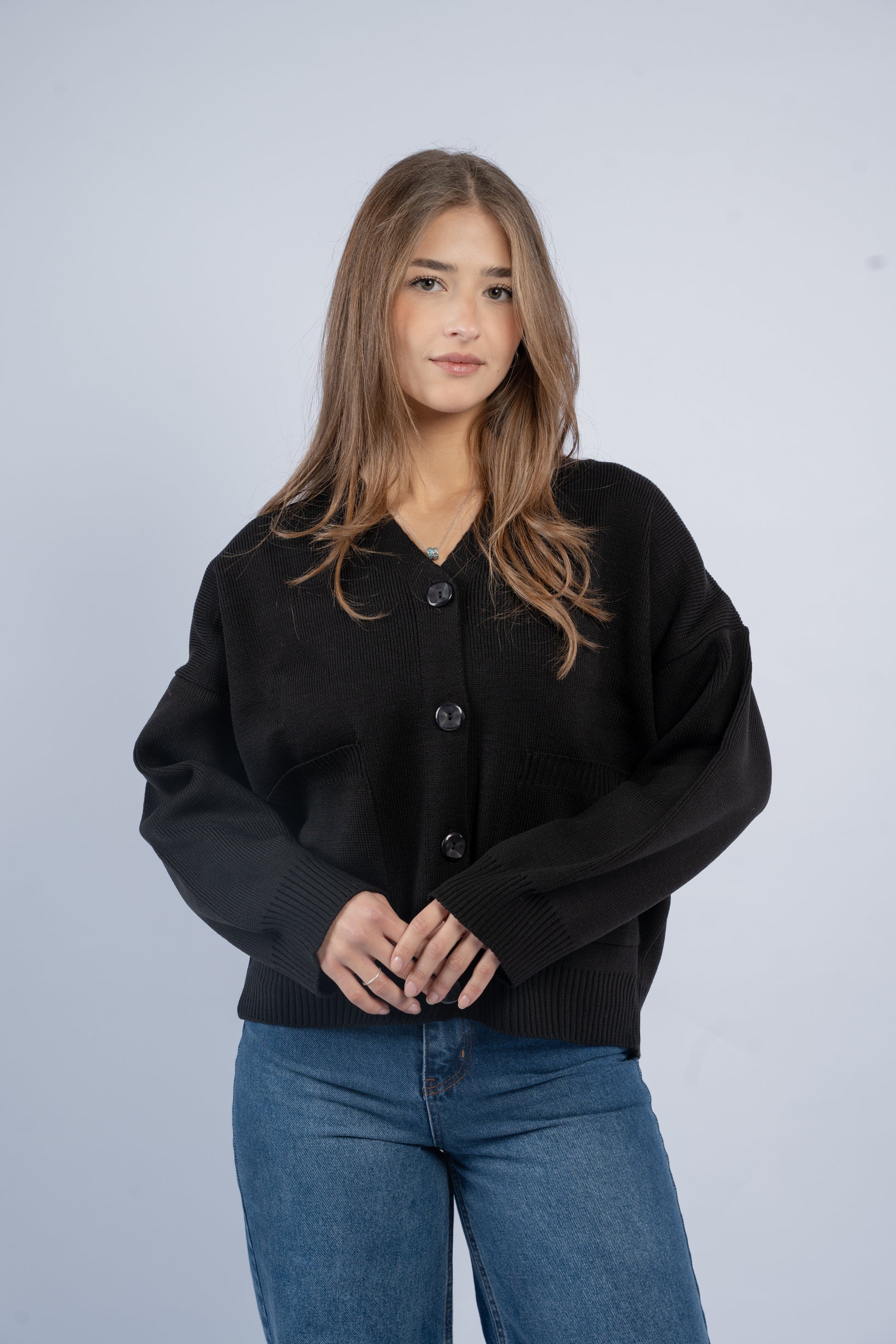 Oversized knit cardigan designed with a relaxed silhouette and soft texture. Features a comfortable fit with clean finishes, making it easy to layer and style.