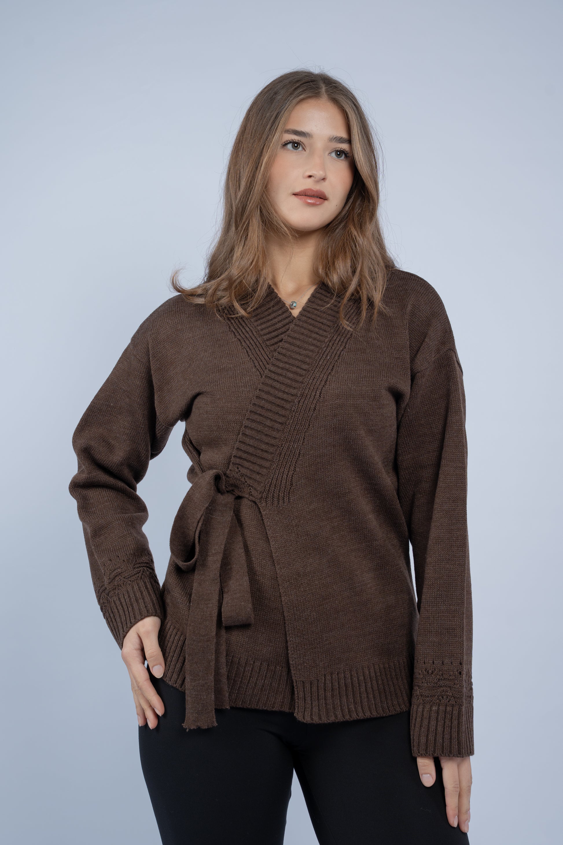 A wrap-style cardigan. Lightweight, comfortable, and flattering, with a waist tie that allows you to adjust the fit your way. Perfect for layering before or after Pilates/gym, or styling effortlessly for everyday wear.