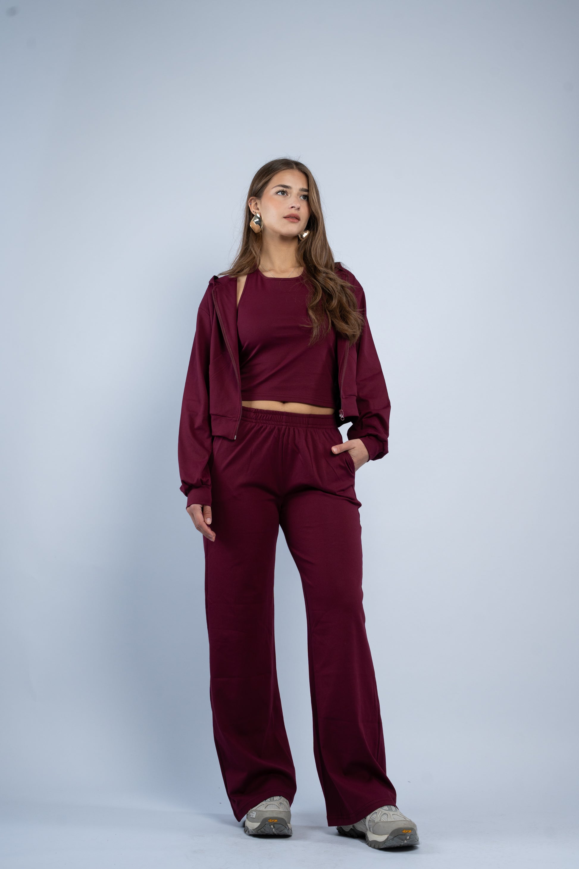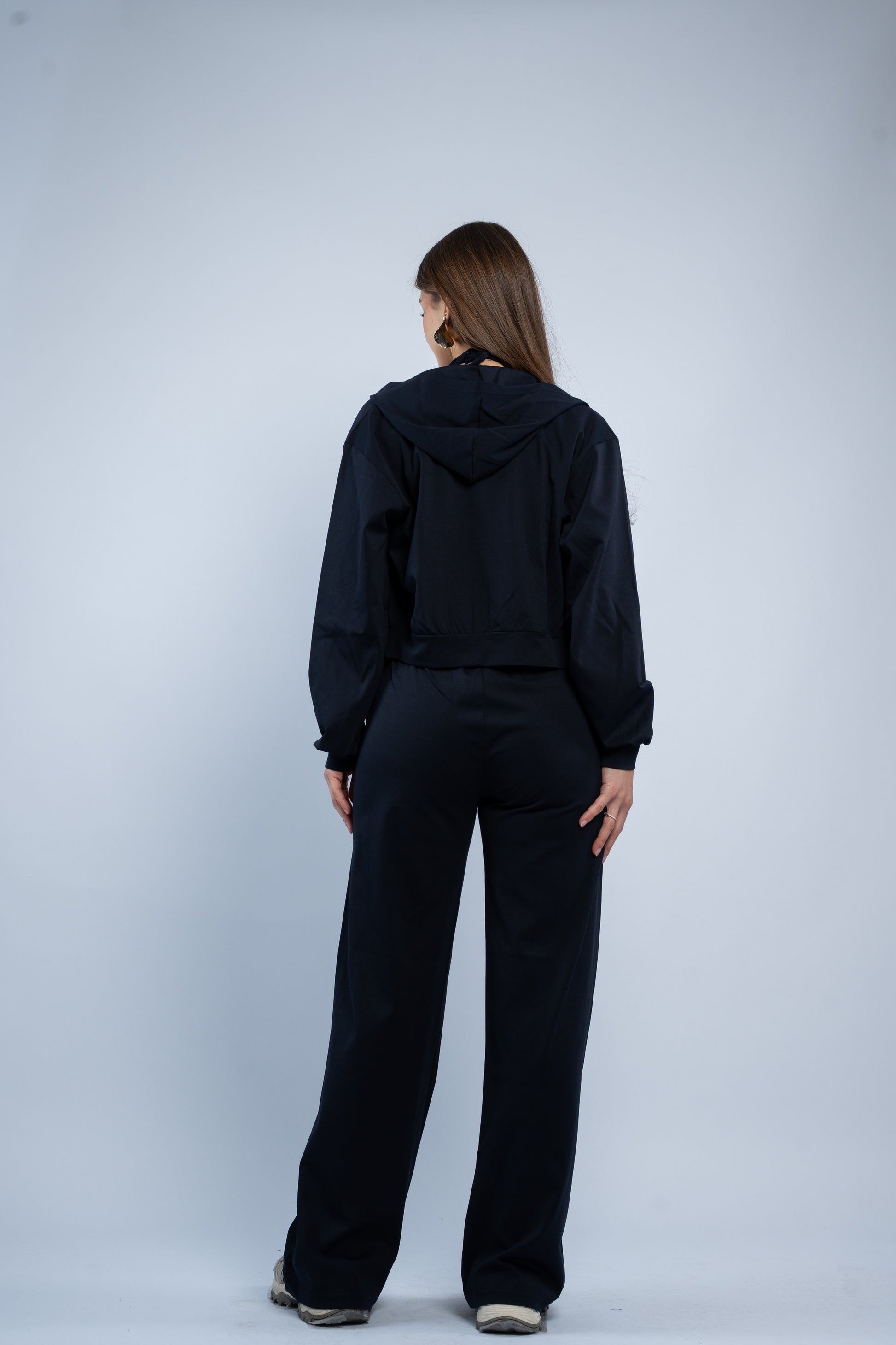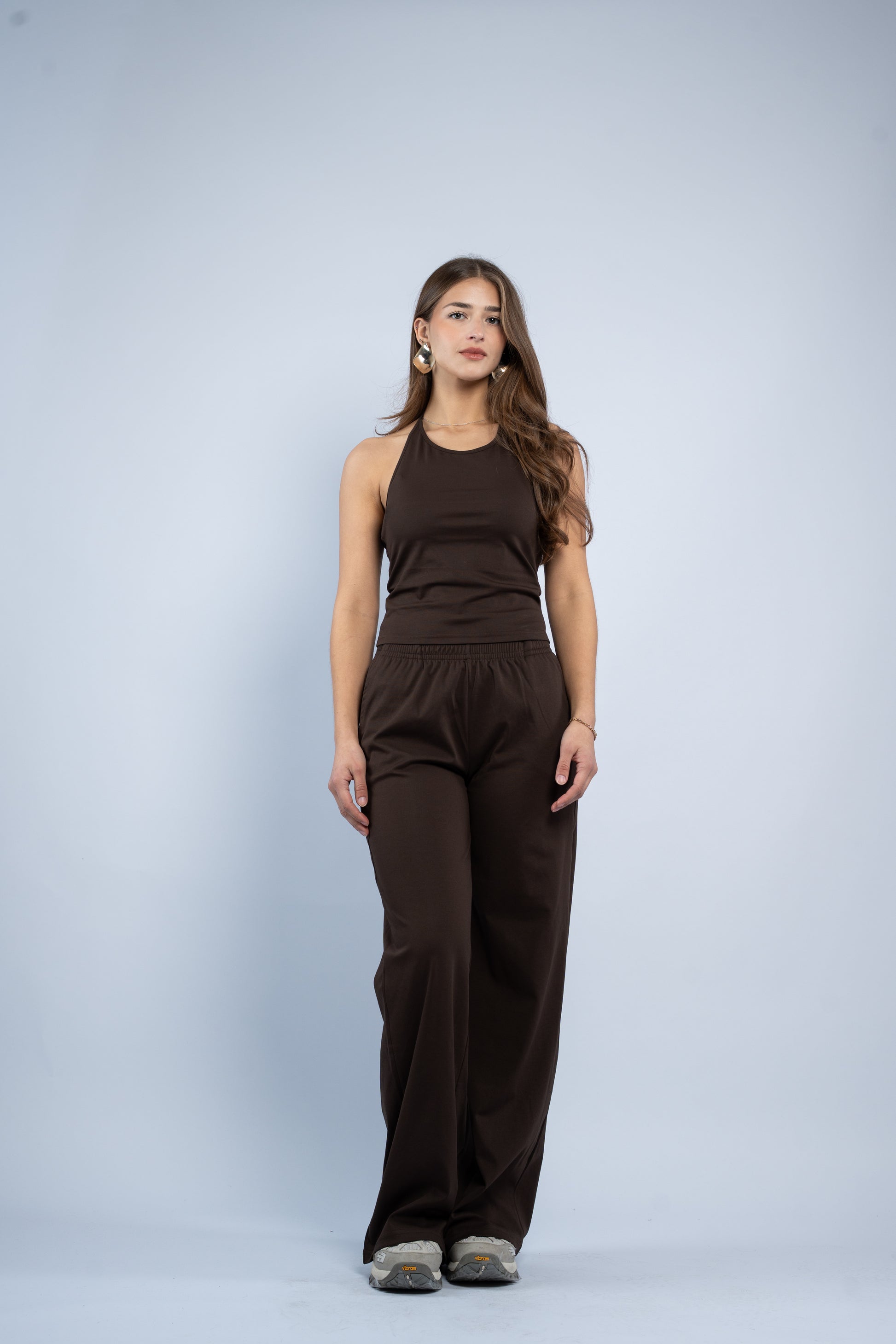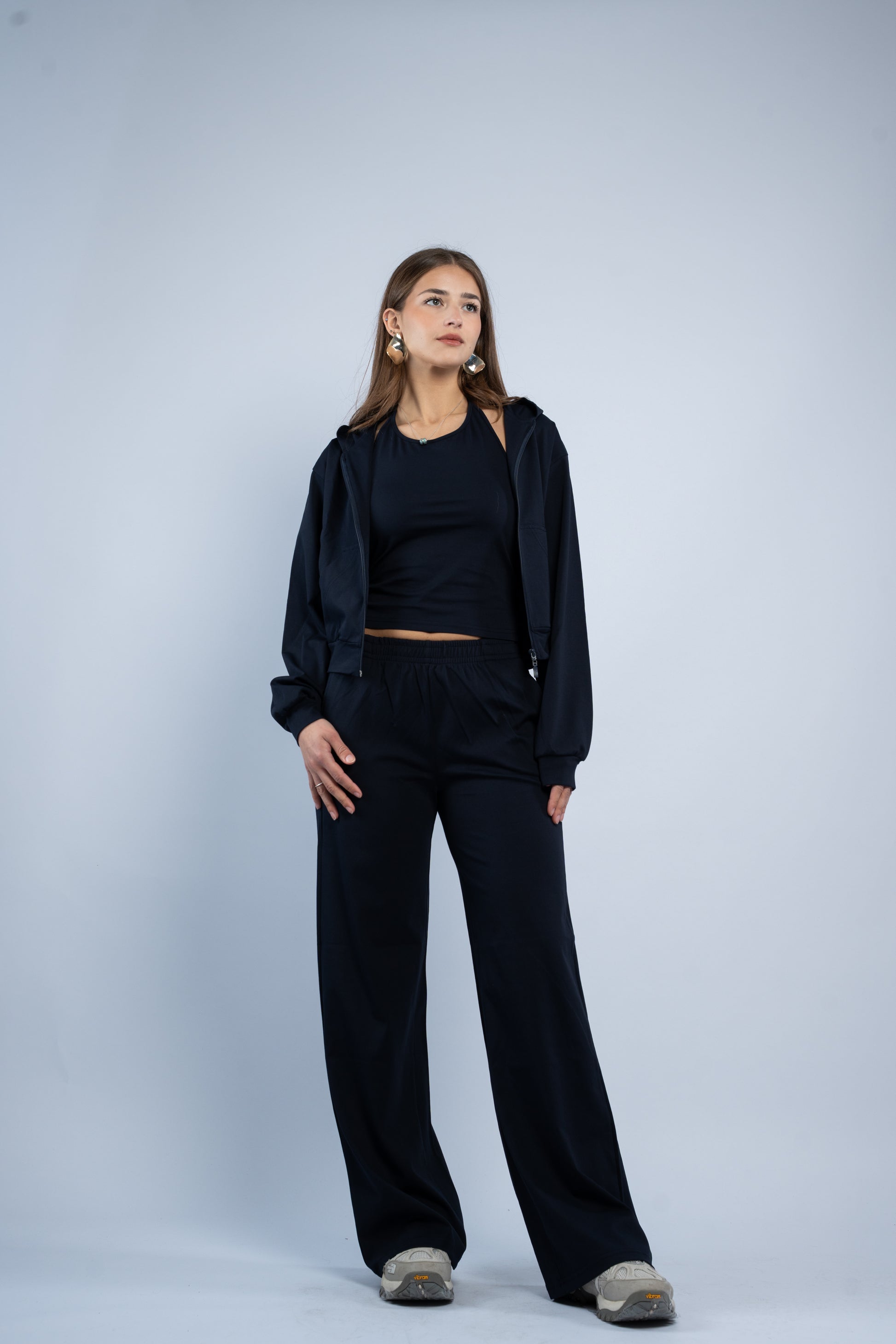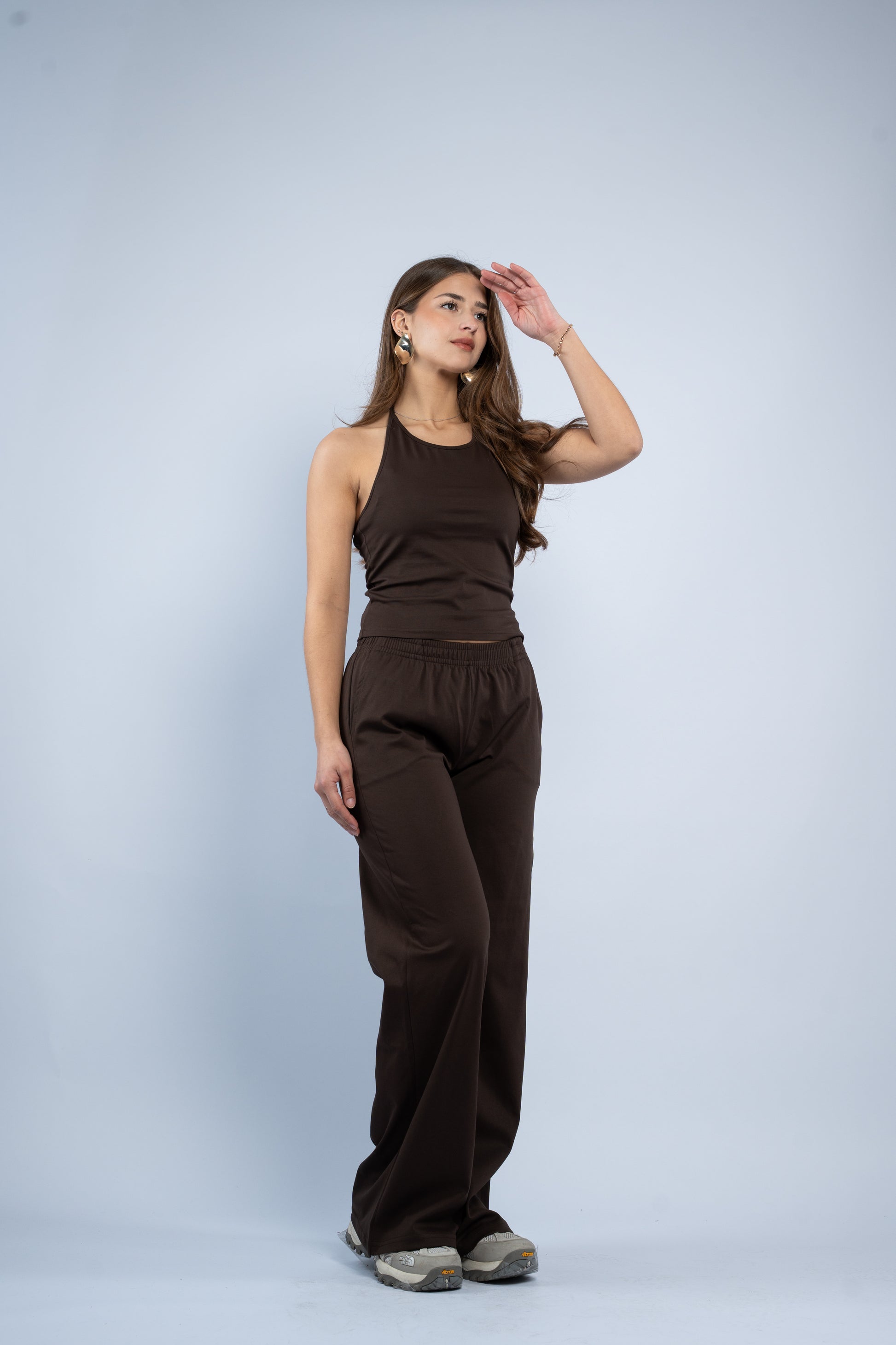 A versatile three-piece set designed for effortless styling. Featuring a sleek halter top, relaxed wide-leg trousers, and a lightweight layering jacket, all crafted in smooth modal fabric for a soft feel.