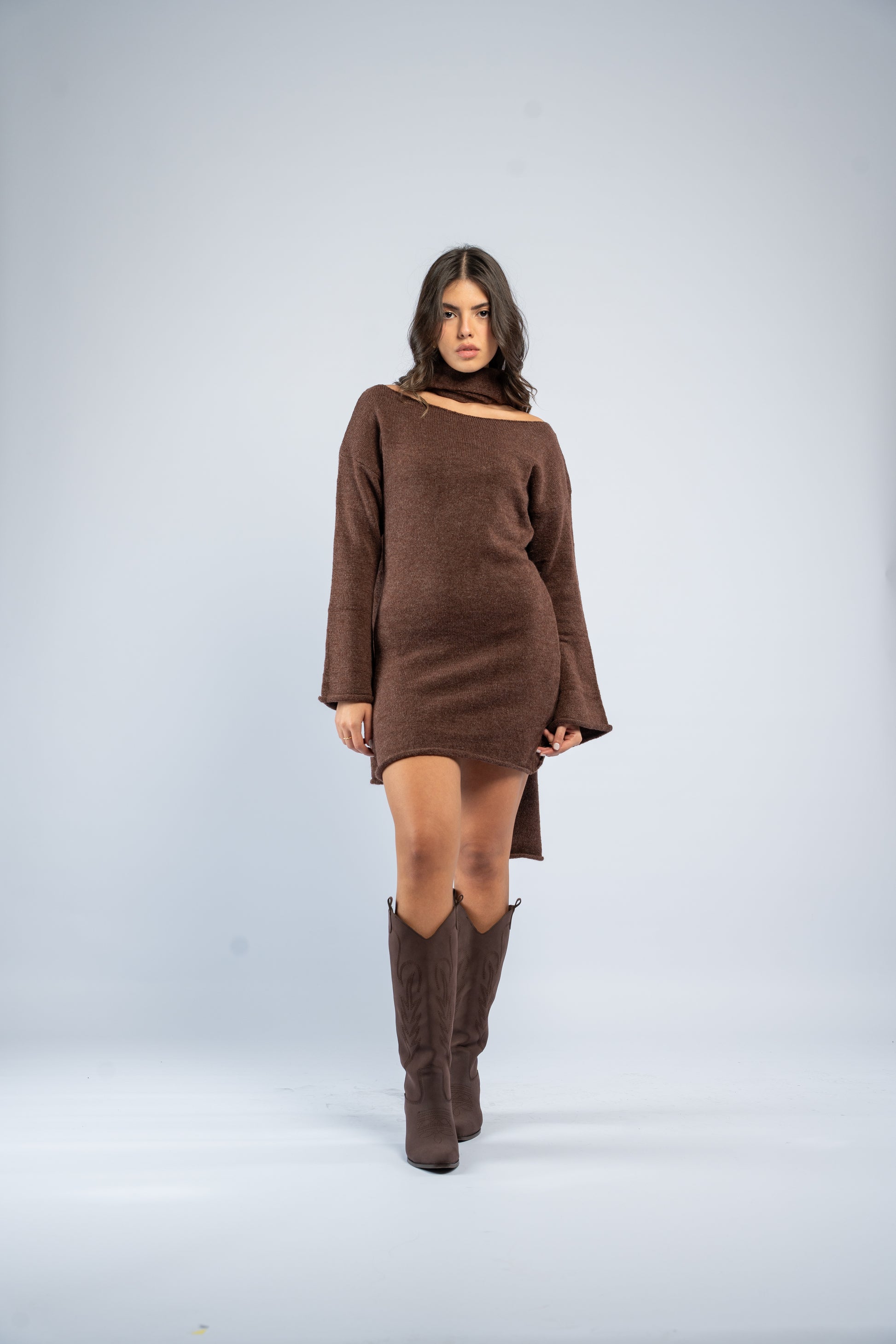 Wool dress with scarf