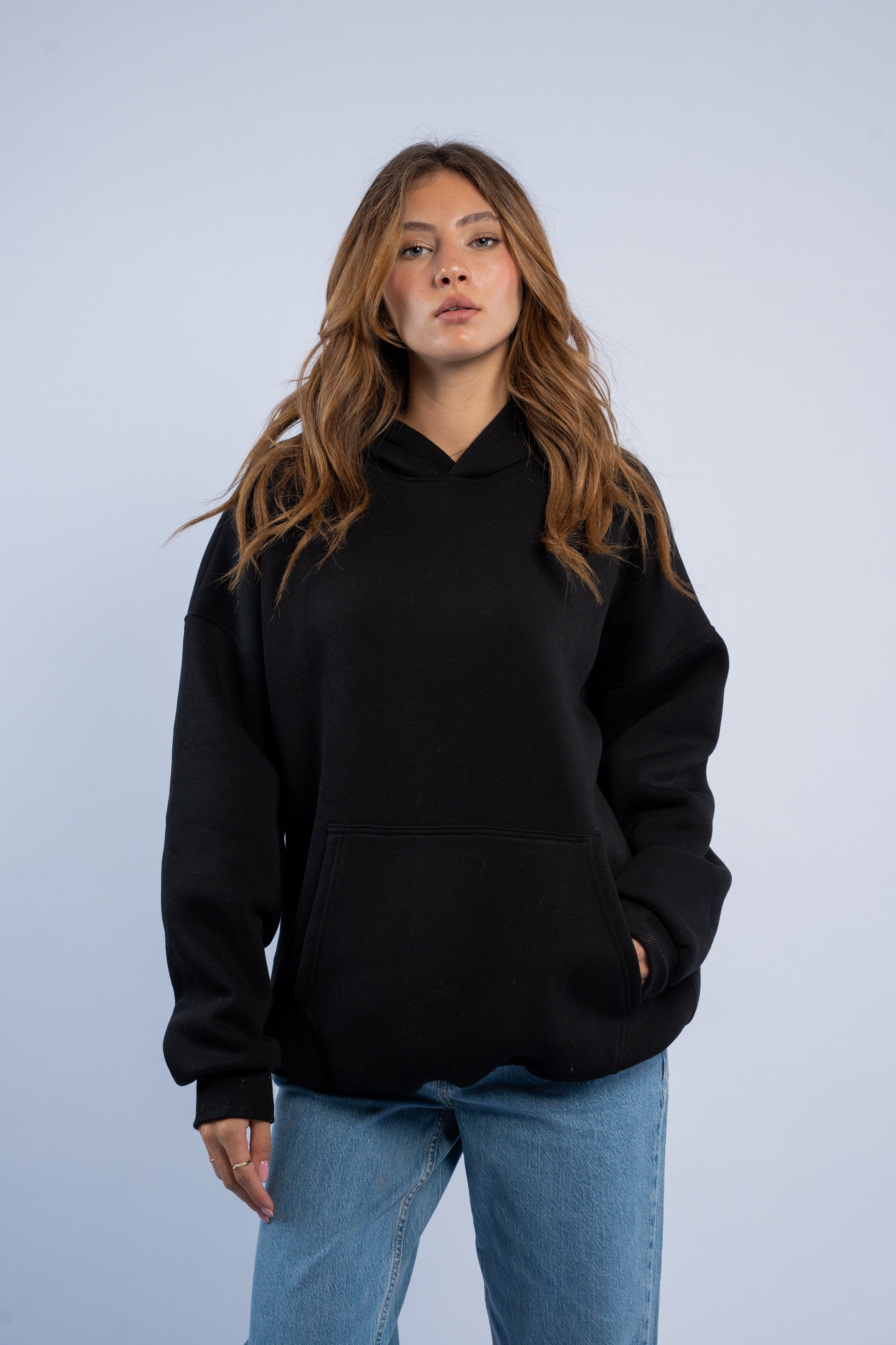 An oversized fleeced hoodie offering warmth and comfort with a playful twist. Features a relaxed fit and a bold quote graphic for a standout casual look.